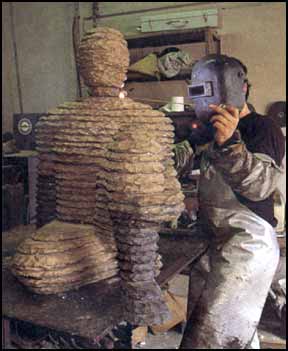 foundry. At last the ceramic is broken away to reveal the bronze sculpture.
