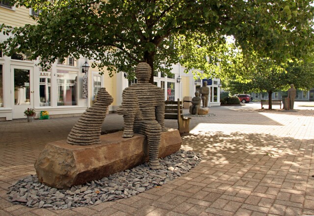 Outdoor exhibition of ten life size and larger than life stone and bronze sculptures by Boaz Vaadia.